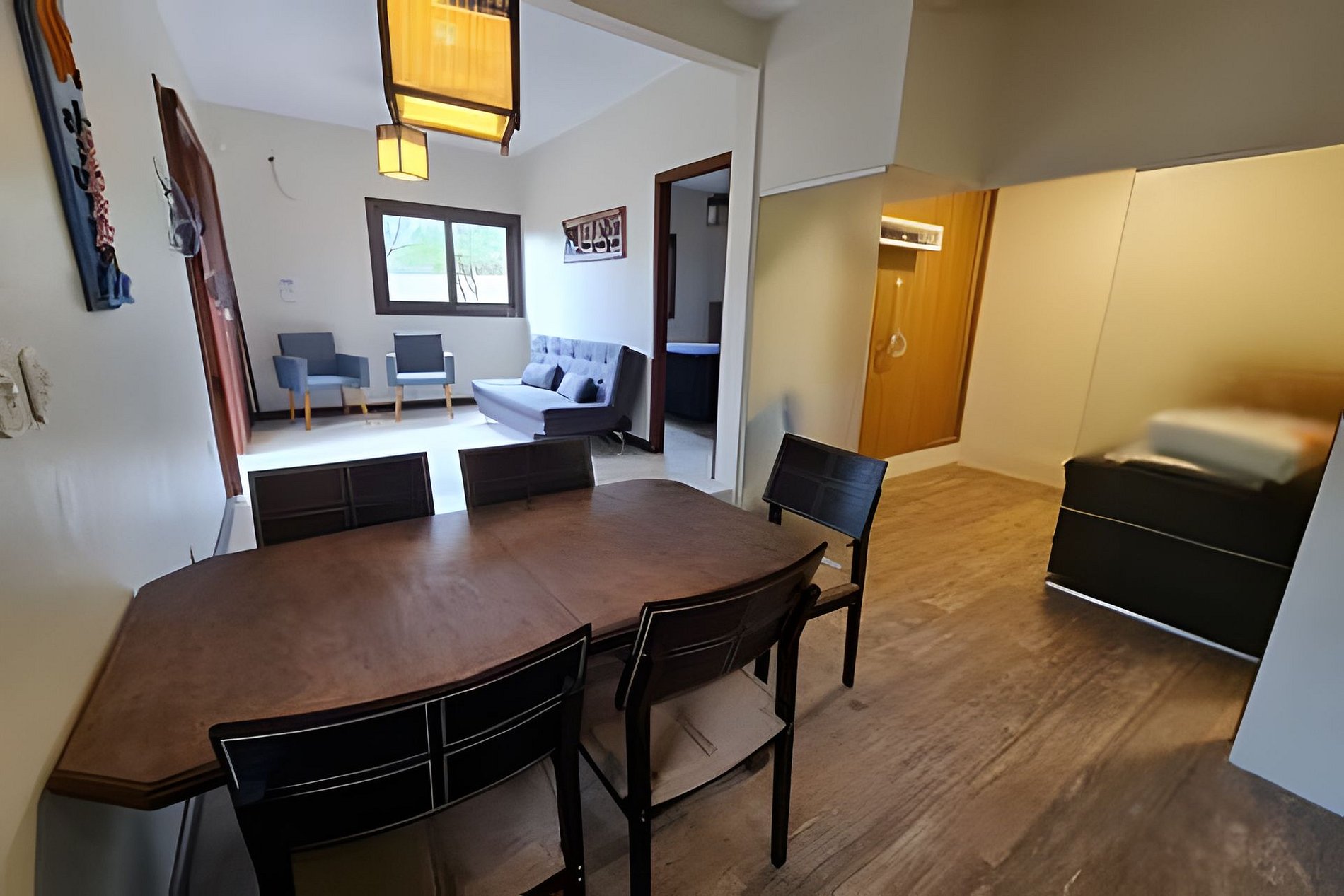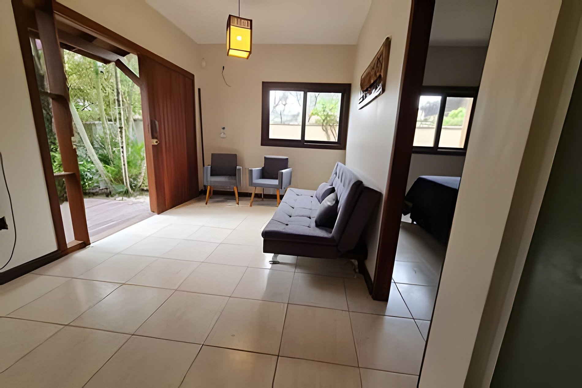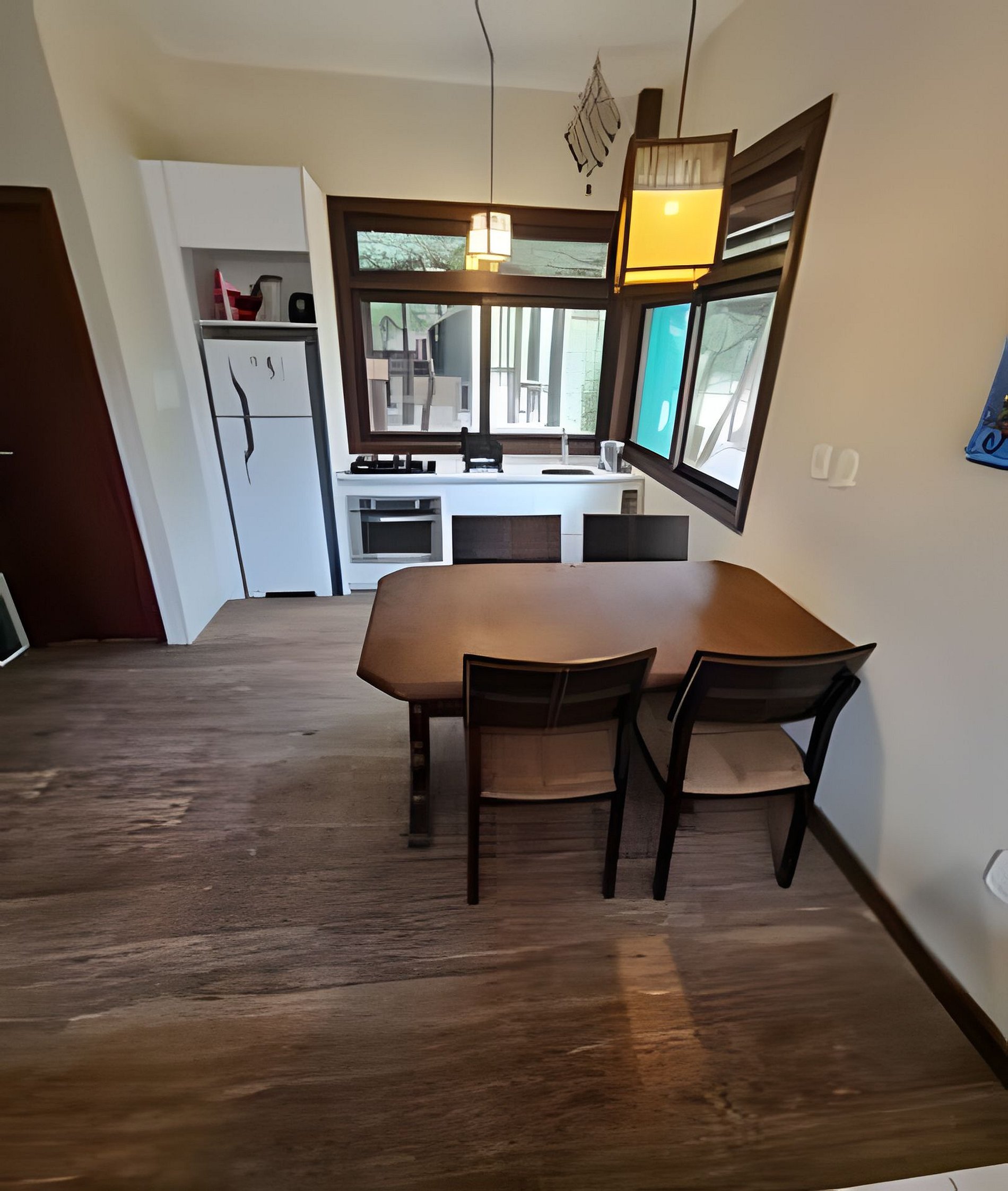 Apto. novo, tipo Loft, com, smart TV, wifi, ar condicionado no quarto, cozinha completa, churrasqueira, sala de jogos, pátio, no meio da natureza em um lugar tranquilo, próximo ao centro da Praia do Rosa. Capacidade para até 7 (sete) pessoas dormindo na sala e nas camas auxiliares do quarto de casal. O local é incrível com árvores frutíferas, fogo de chão, bilhar, ping pong etc. Local para eventos e esportes. Relaxe com toda a família nesta acomodação tranquila.