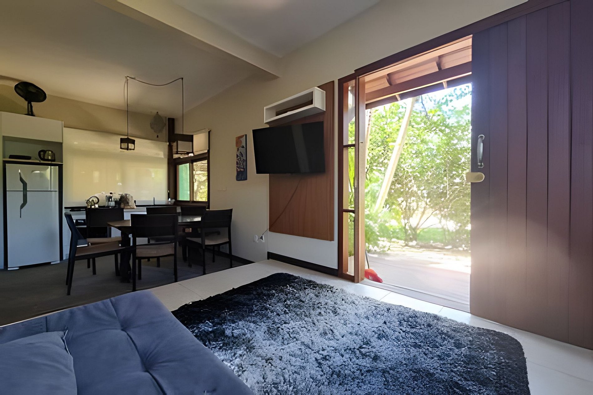 Apto. novo, tipo Loft, com, smart TV, wifi, ar condicionado no quarto, cozinha completa, churrasqueira, sala de jogos, pátio, no meio da natureza em um lugar tranquilo, próximo ao centro da Praia do Rosa. Capacidade para até 7 (sete) pessoas dormindo na sala e nas camas auxiliares do quarto de casal. O local é incrível com árvores frutíferas, fogo de chão, bilhar, ping pong etc. Local para eventos e esportes. Relaxe com toda a família nesta acomodação tranquila.