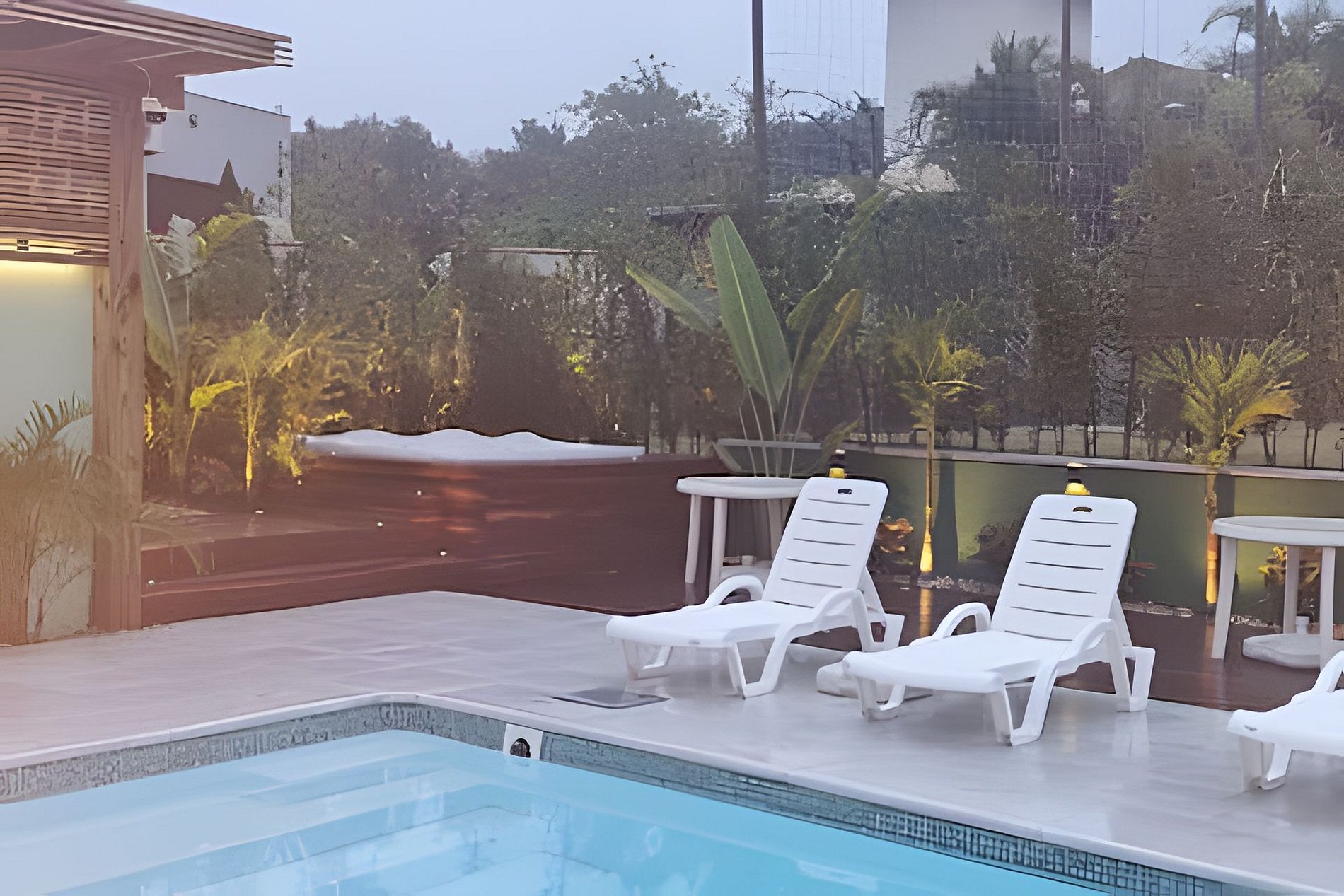 Jacuzzi e pátio amplo para relaxar