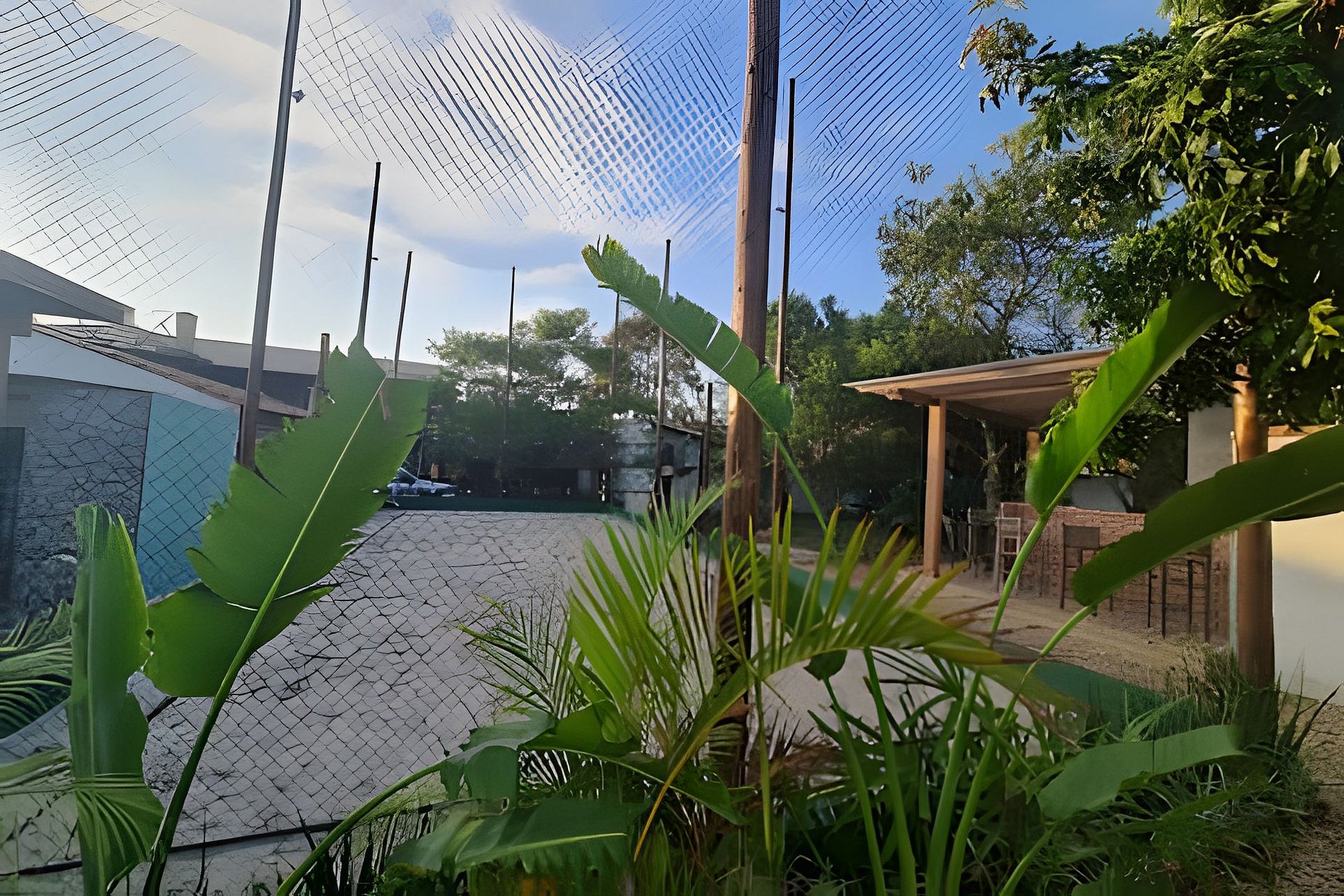 Quadra de beach tênis e quadra de futebol em grama para se divertir