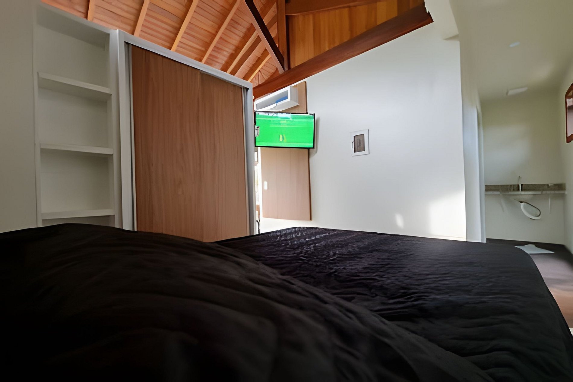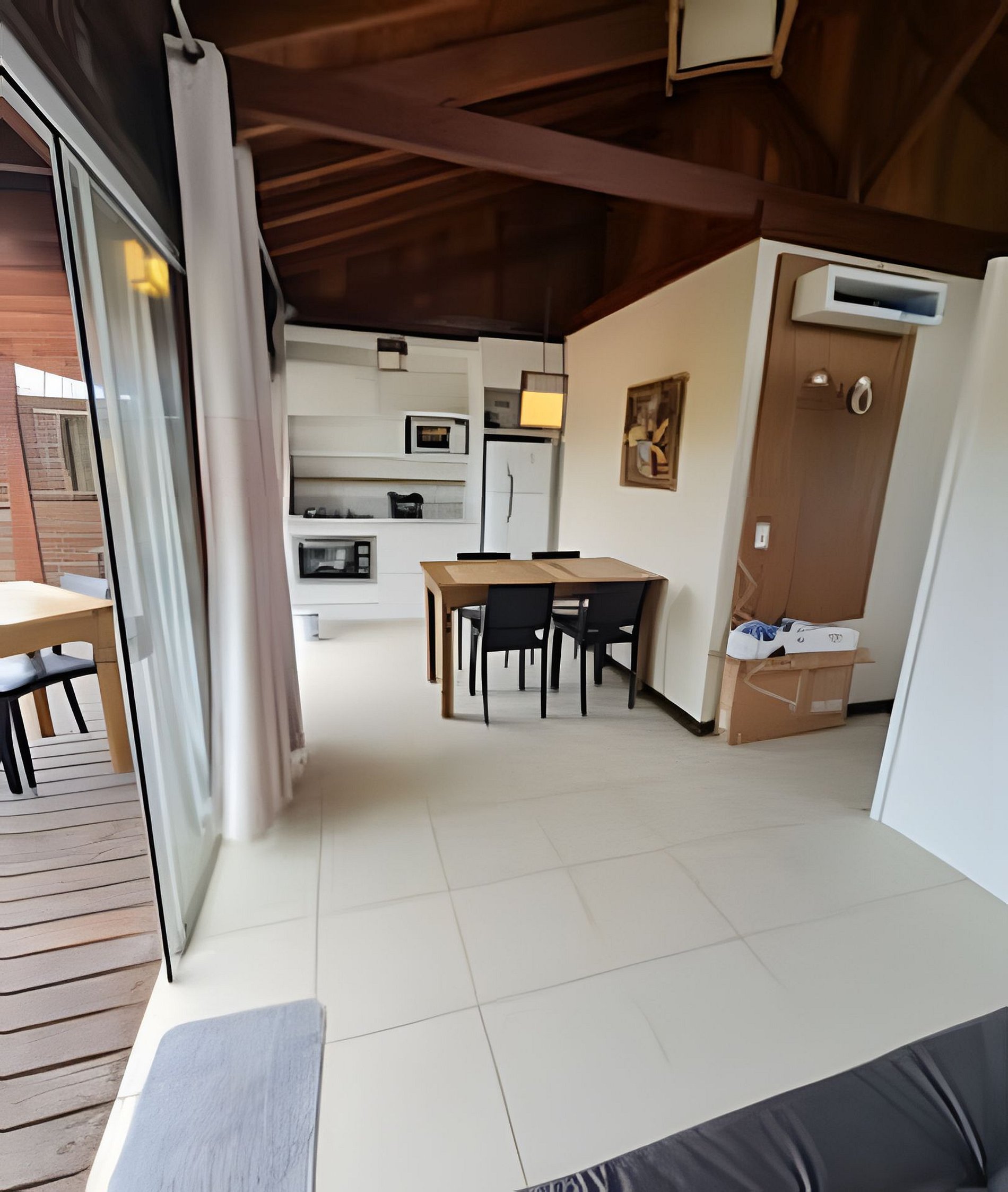 Apto. top, tipo Loft, com ampla varanda, smart TV, wifi, ar condicionado no quarto, cozinha completa, churrasqueira, sala de jogos, no meio da natureza em um lugar tranquilo, próximo ao centro da Praia do Rosa. Acomoda até 5 (cinco) pessoas dormindo na sala e nas camas auxiliares do quarto de casal. O Espaço é incrível com árvores frutíferas, fogo de chão, bilhar, ping pong etc. Local para eventos e esportes. Relaxe com toda a família nesta acomodação tranquila e próxima ao Centro do Rosa.