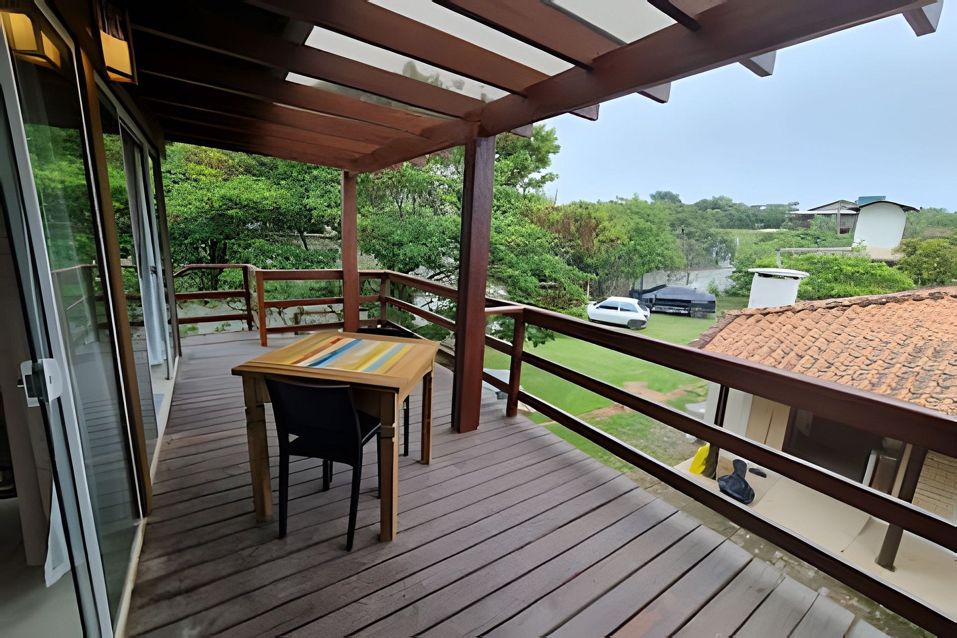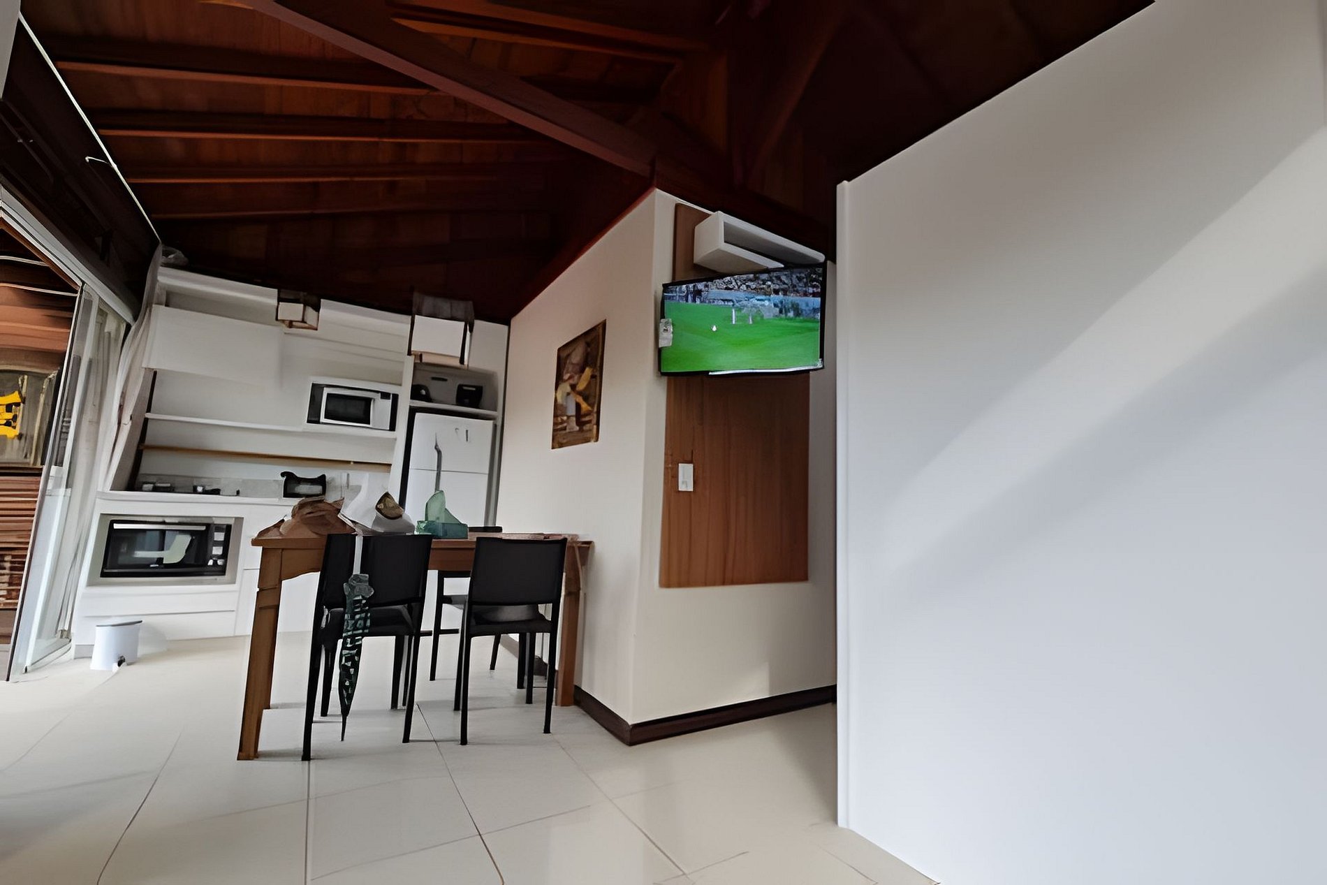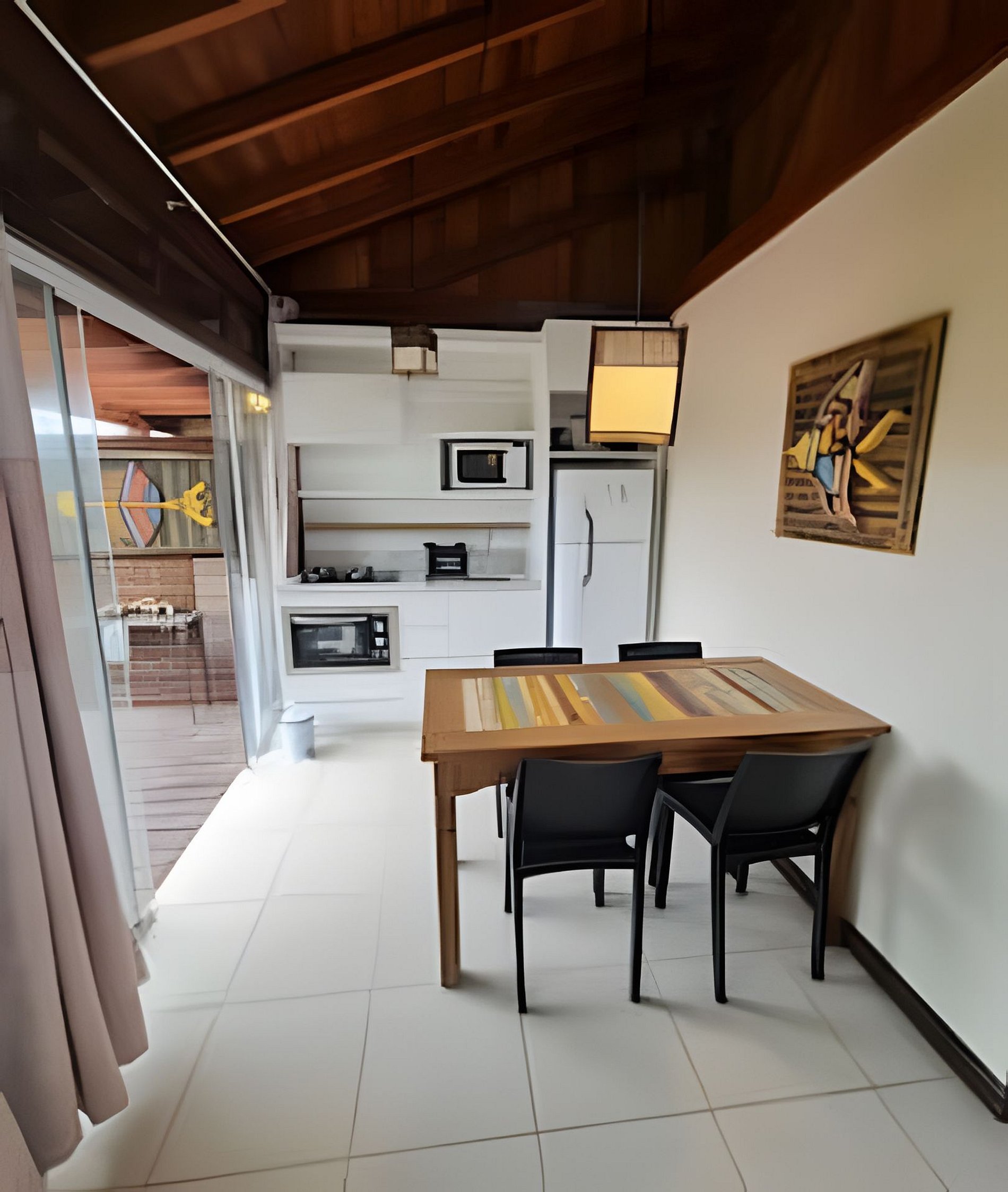 Apto. top, tipo Loft, com ampla varanda, smart TV, wifi, ar condicionado no quarto, cozinha completa, churrasqueira, sala de jogos, no meio da natureza em um lugar tranquilo, próximo ao centro da Praia do Rosa. Acomoda até 5 (cinco) pessoas dormindo na sala e nas camas auxiliares do quarto de casal. O Espaço é incrível com árvores frutíferas, fogo de chão, bilhar, ping pong etc. Local para eventos e esportes. Relaxe com toda a família nesta acomodação tranquila e próxima ao Centro do Rosa.