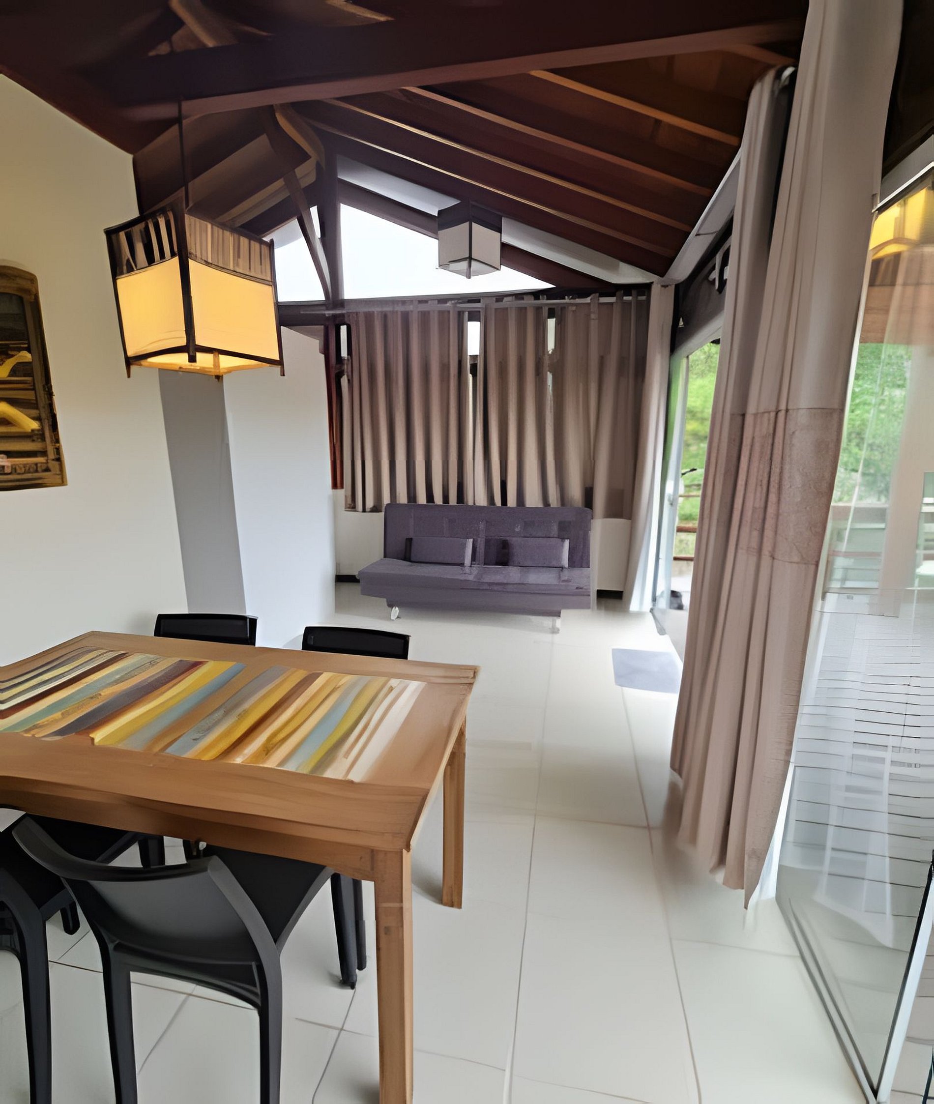 Apto. top, tipo Loft, com ampla varanda, smart TV, wifi, ar condicionado no quarto, cozinha completa, churrasqueira, sala de jogos, no meio da natureza em um lugar tranquilo, próximo ao centro da Praia do Rosa. Acomoda até 5 (cinco) pessoas dormindo na sala e nas camas auxiliares do quarto de casal. O Espaço é incrível com árvores frutíferas, fogo de chão, bilhar, ping pong etc. Local para eventos e esportes. Relaxe com toda a família nesta acomodação tranquila e próxima ao Centro do Rosa.