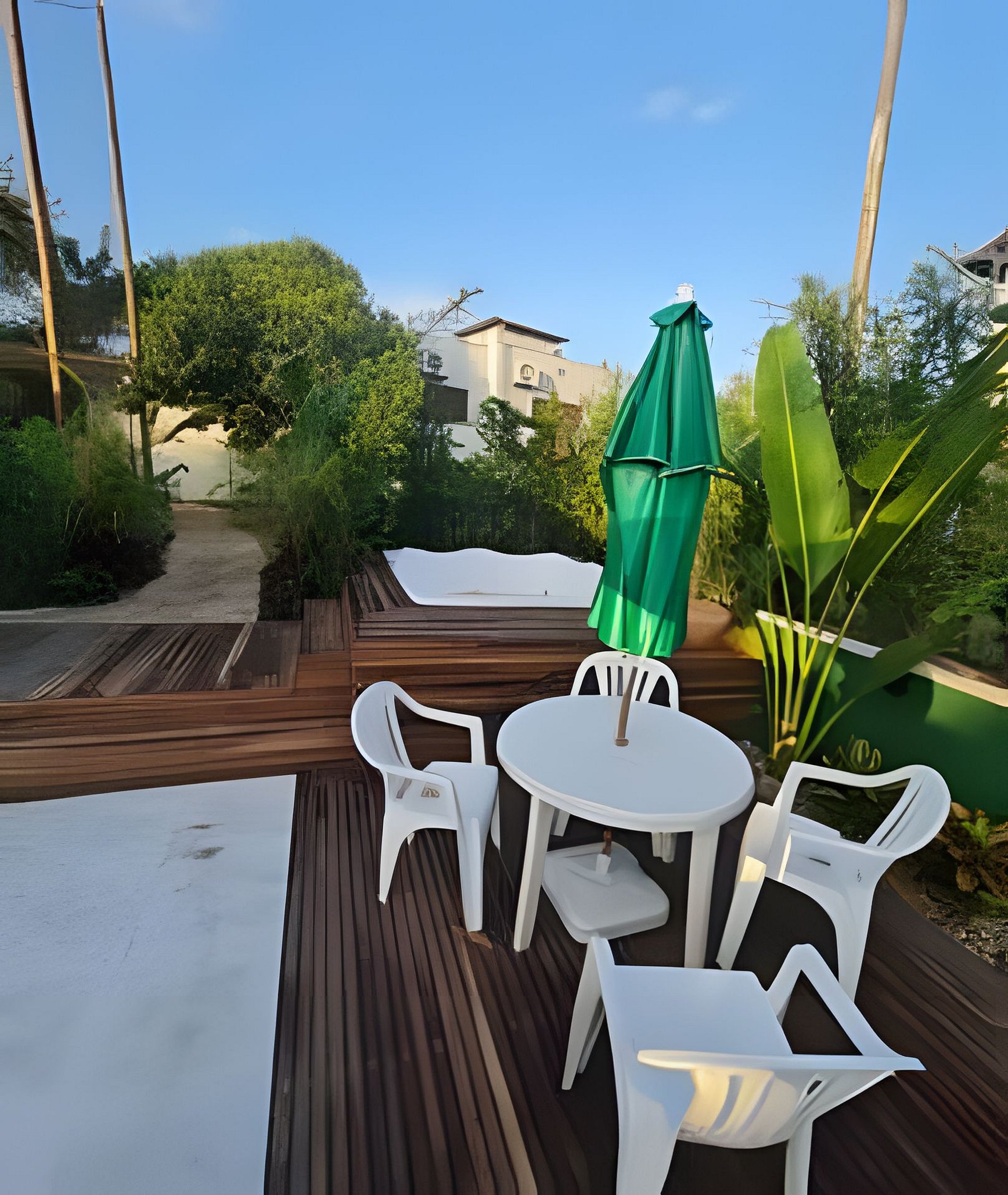 Jacuzzi e pátio amplo para relaxar