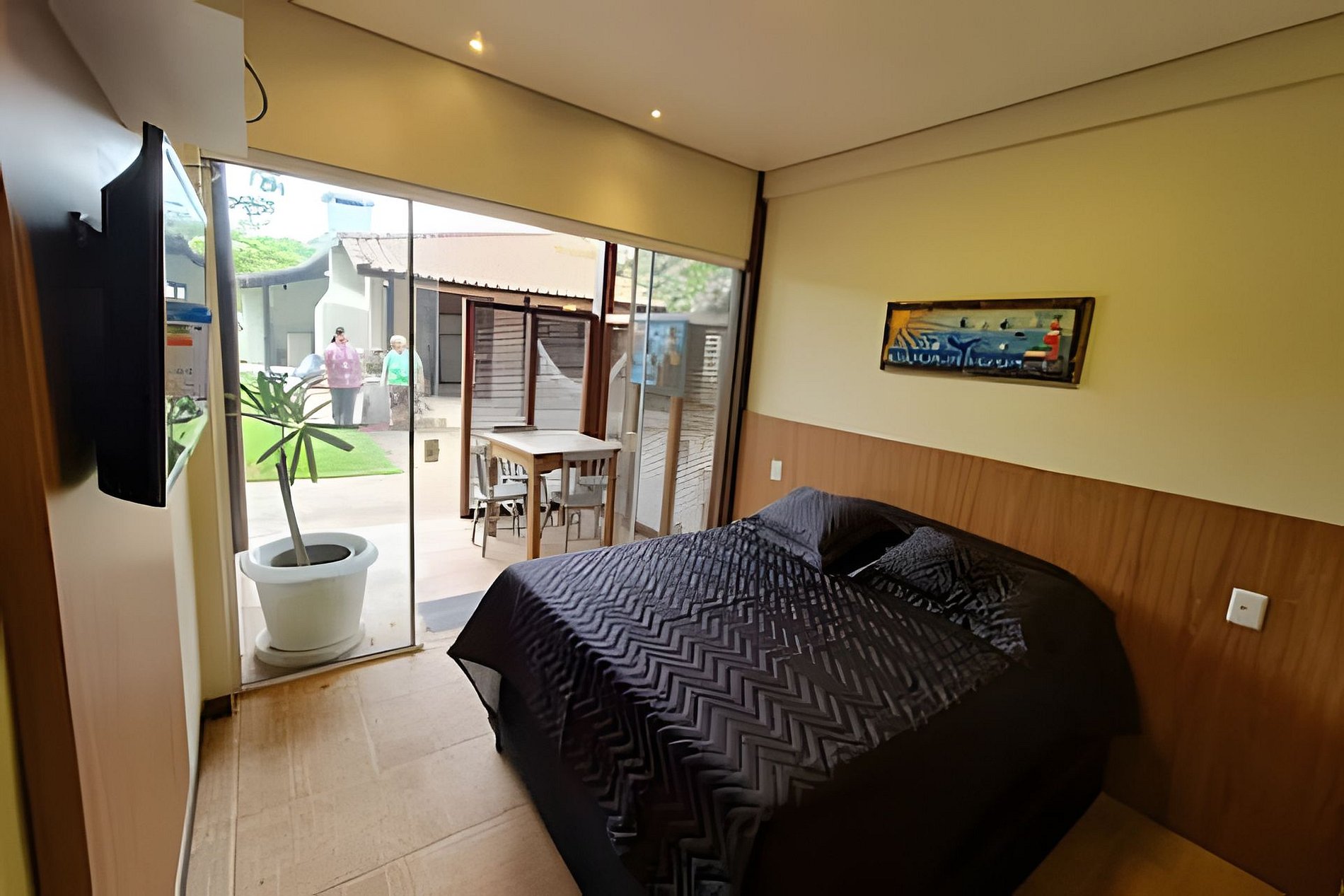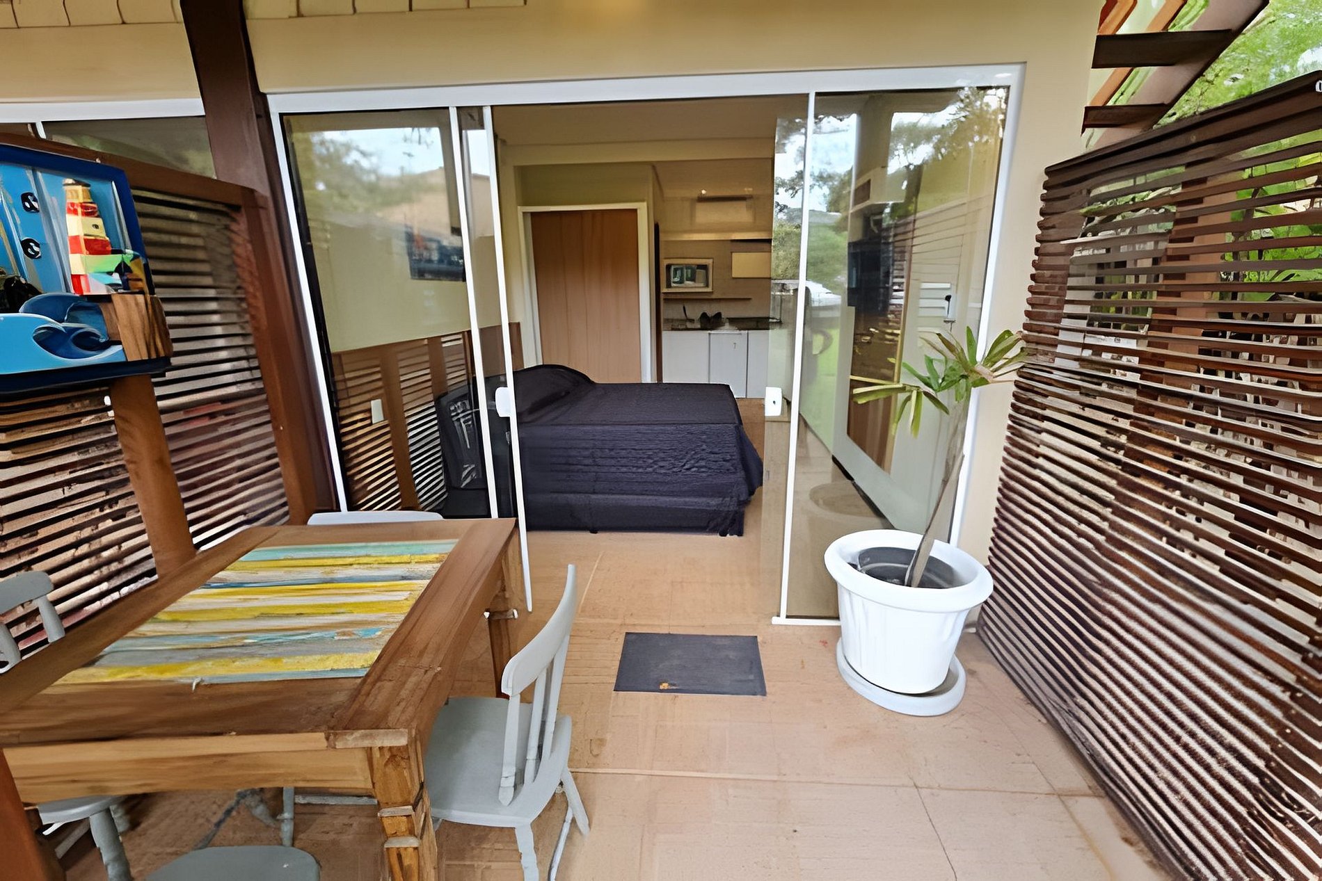 Abrace a simplicidade neste lugar tranquilo e bem-localizado. Apto. top, tipo FLAT ou Studio, com varanda, smart TV, wifi, ar condicionado, cozinha, churrasqueira, sala de jogos, em um lugar calmo e próximo a tudo. Acomoda até 4 (quatro) pessoas dormindo nas camas auxiliares da cama de casal. O Espaço é incrível com árvores frutíferas, fogo de chão, bilhar, ping pong etc. Local para eventos e esportes. Curta essa acomodação em meio a natureza e próxima ao Centro da Praia do Rosa.