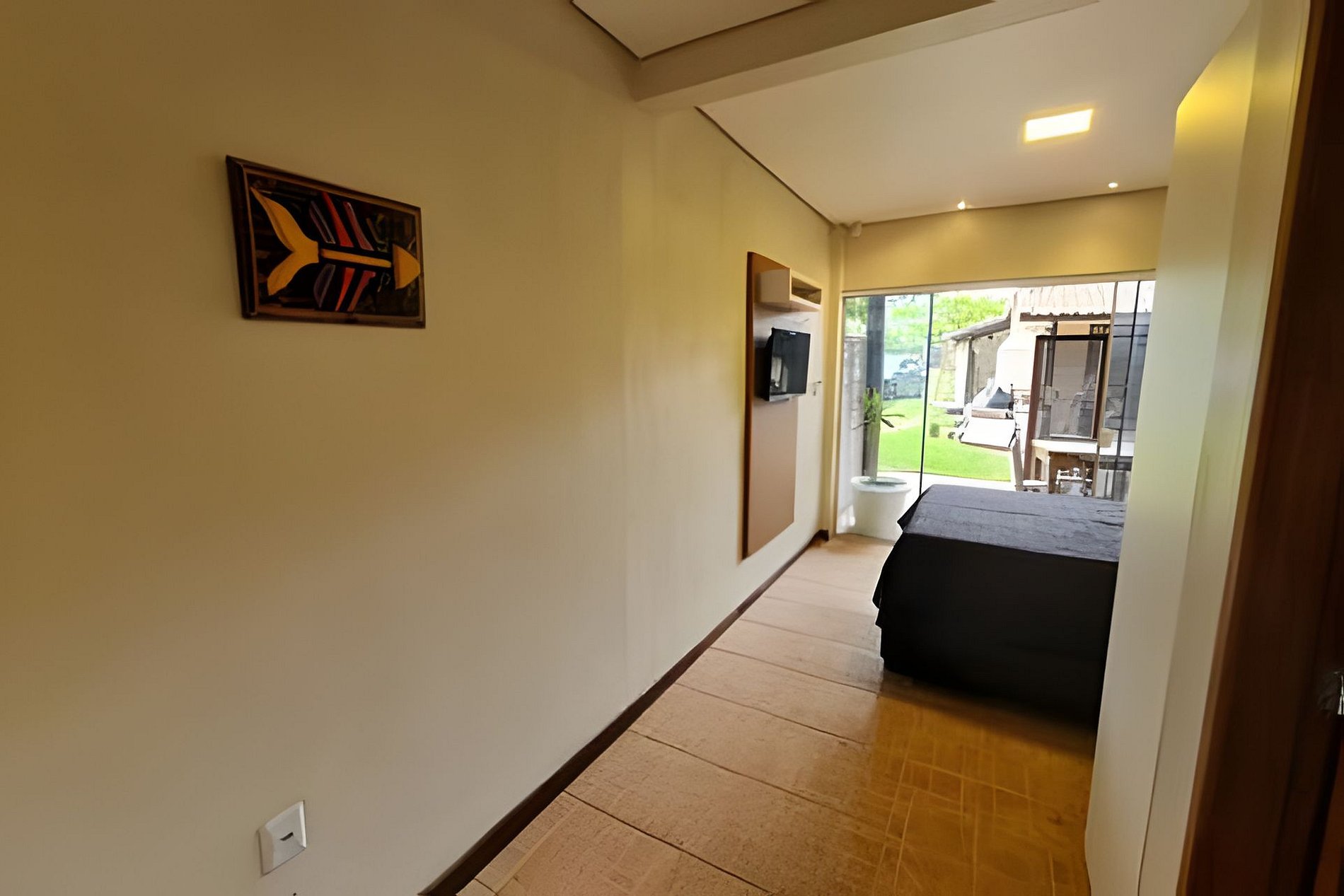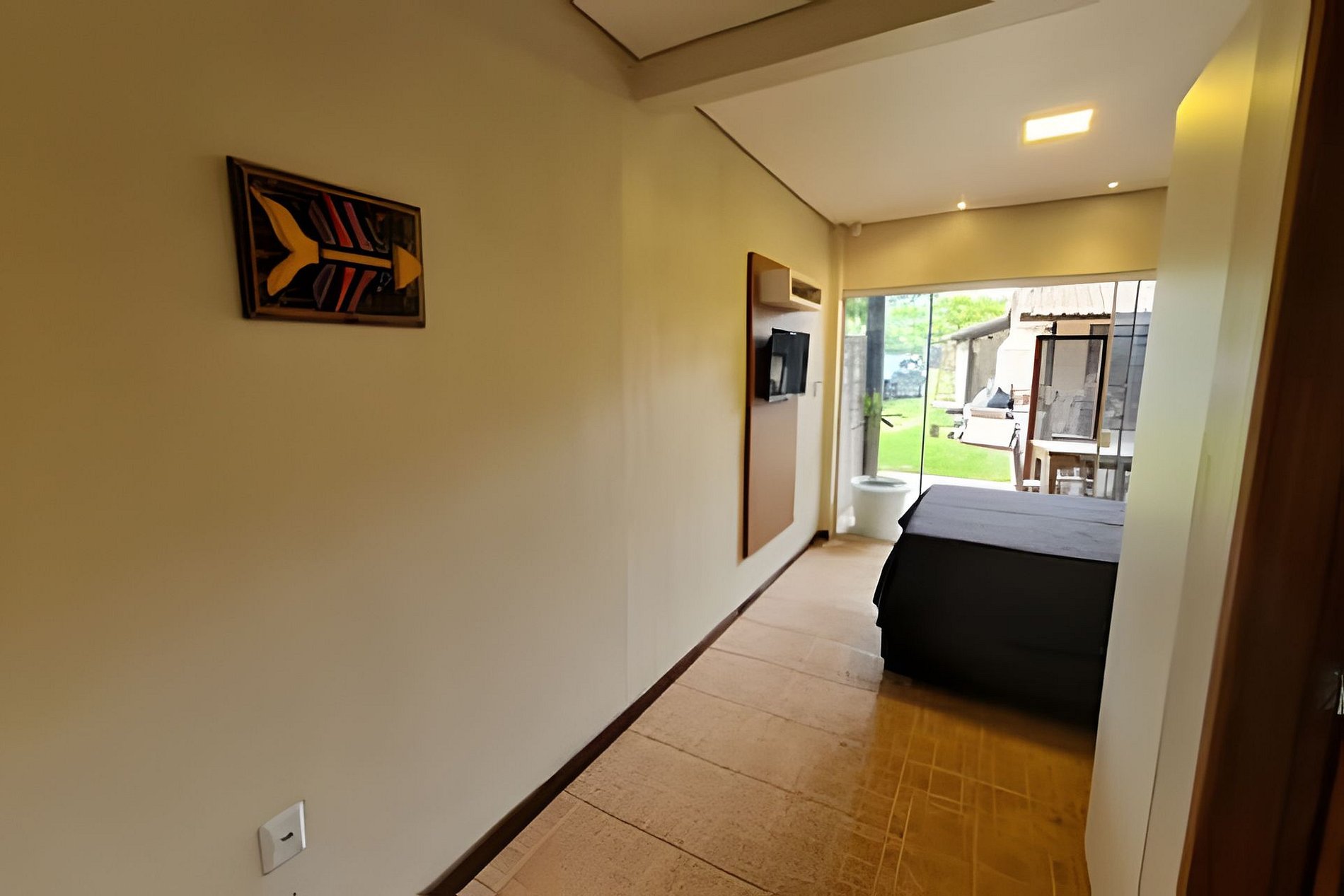 Abrace a simplicidade neste lugar tranquilo e bem-localizado. Apto. top, tipo FLAT ou Studio, com varanda, smart TV, wifi, ar condicionado, cozinha, churrasqueira, sala de jogos, em um lugar calmo e próximo a tudo. Acomoda até 4 (quatro) pessoas dormindo nas camas auxiliares da cama de casal. O Espaço é incrível com árvores frutíferas, fogo de chão, bilhar, ping pong etc. Local para eventos e esportes. Curta essa acomodação em meio a natureza e próxima ao Centro da Praia do Rosa.