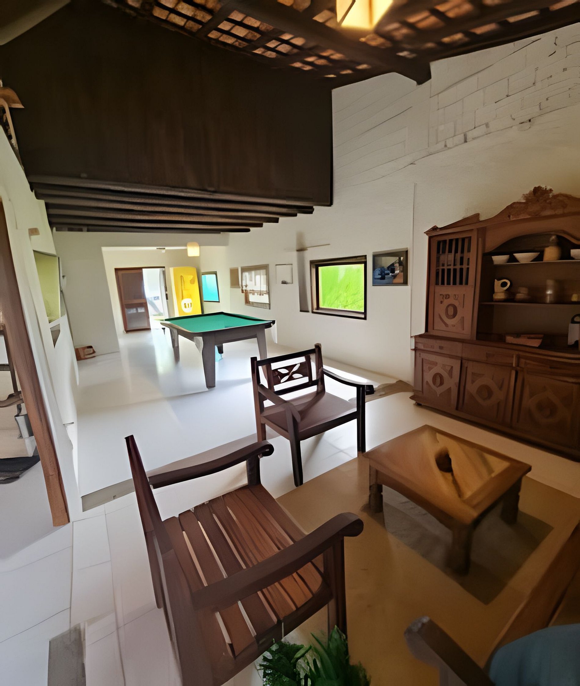 Sala de jogos com bilhar e pingue-pongue
